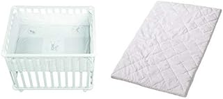 roba Laufgitter, Laufstall 75x100, sicheres Spielgitter inkl. Schutzeinlage 'Indibär' & Rollen, Baby Krabbelgitter, Holz weiß + Laufgittermatratze, Matratze f, Laufgitter 75x100cm, gesteppt