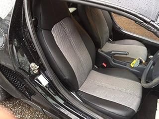 Top Car Athens || Zwei Autositzbezüge | Luxus aus synthetischem und Kunstleder | 100% Passgenau | Sitzbezügesets | Kompatibel mit SMART FORTWO (451) | Farbe Grau und Grau Schwarz