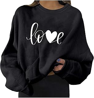 Lange Ärmel Pullover Damen Winter Pullover mit Rundhalsausschnitt, Vintage Sweatshirt Oversized Liebesmuster Pullover Teenager Mädchen Sportbekleidung Sweatshirt for Women Hoodies